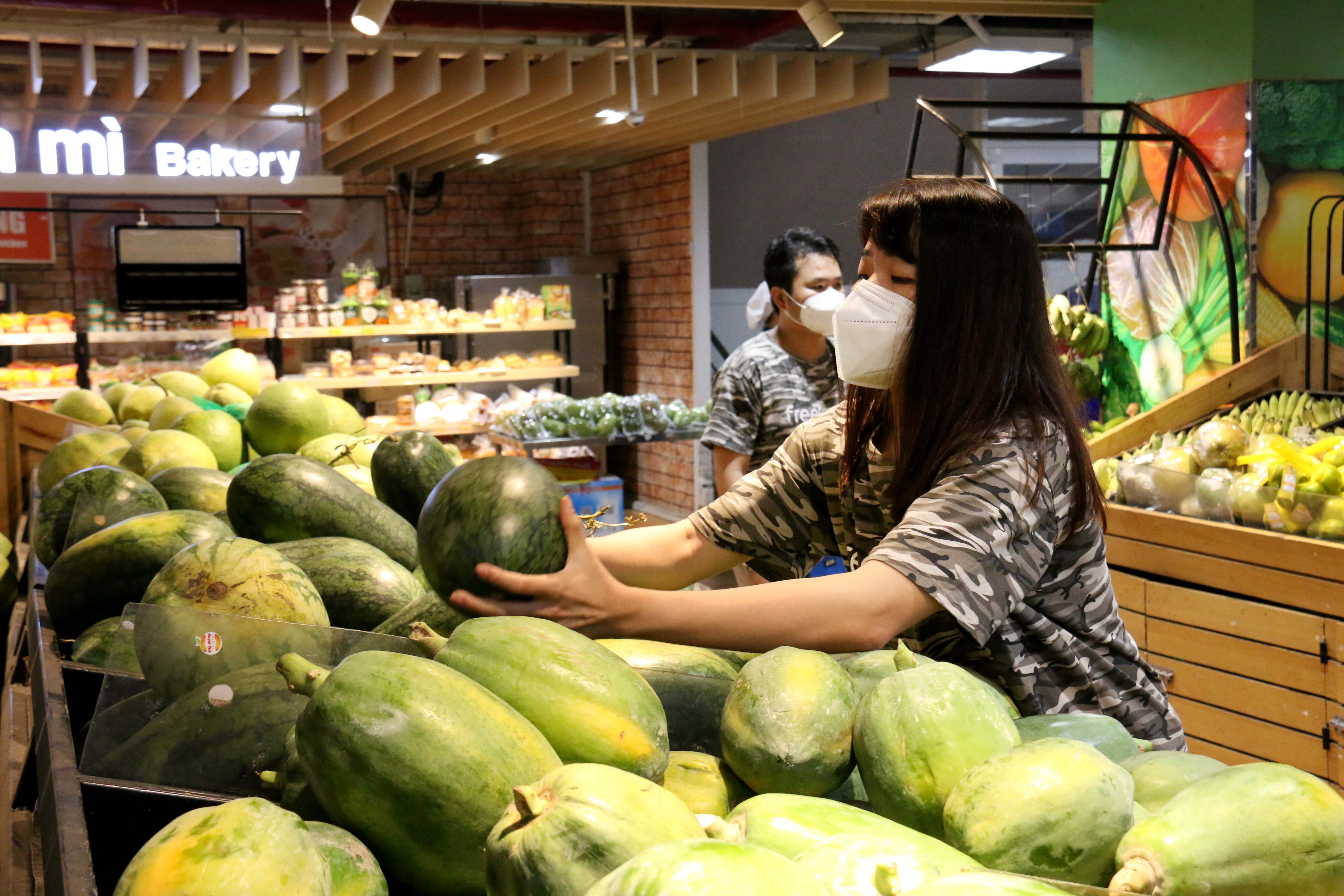 Tại siêu thị Co.opmart Nguyễn Đình Chiểu (quận 3), bà nội trợ Nguyễn Phương Hoài (44 tuổi, ngụ đường Lý Chính Thắng, quận 3) ngoài việc mua dưa hấu đỏ giá mềm "giải cứu" giúp bà con nông dân, bà Hoài cũng chọn mua thêm thanh long ruột đỏ và cam sành để gia đình ăn dần trong tuần.