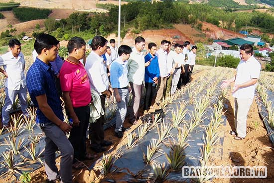 Thành viên HTX nông nghiệp Nam Phượng (Sốp Cộp) tập huấn kỹ thuật trồng dứa nguyên liệu.