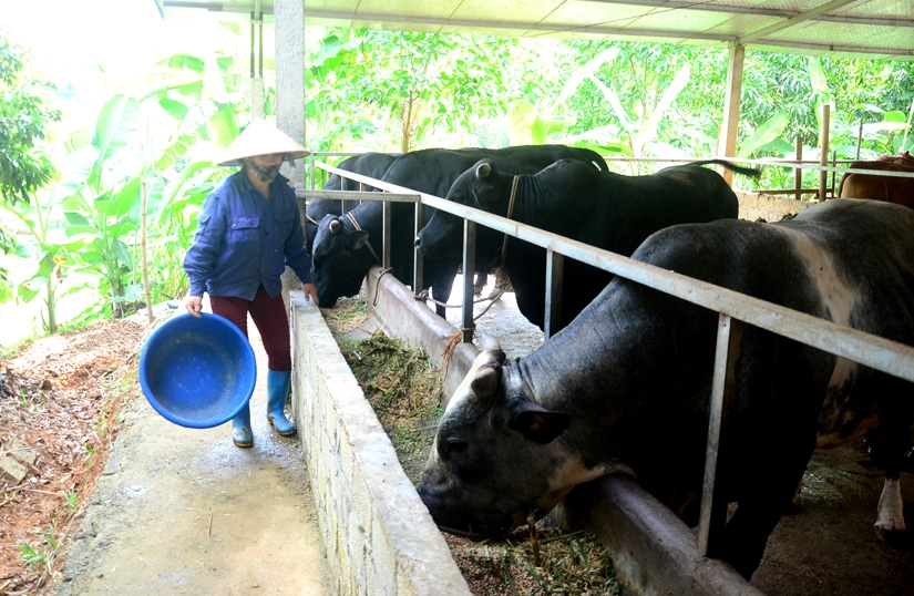 Thành viên HTX chăn nuôi trâu, bò sạch xã Thái Sơn (Hàm Yên) liên kết chăn nuôi trâu, bò vỗ béo đem lại lợi nhuận cao.